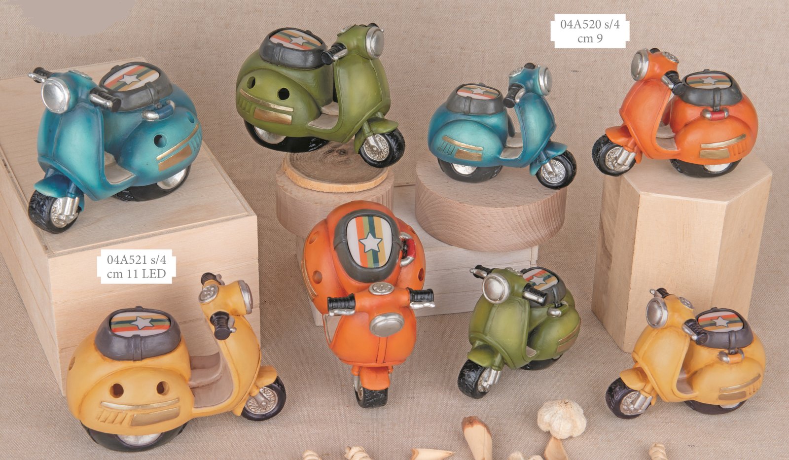 cm.9: versione classica, ideale come decorazione. LED cm.11: luce notturna soffusa. Entrambi 4 assortiti, design Speed Scooter.
