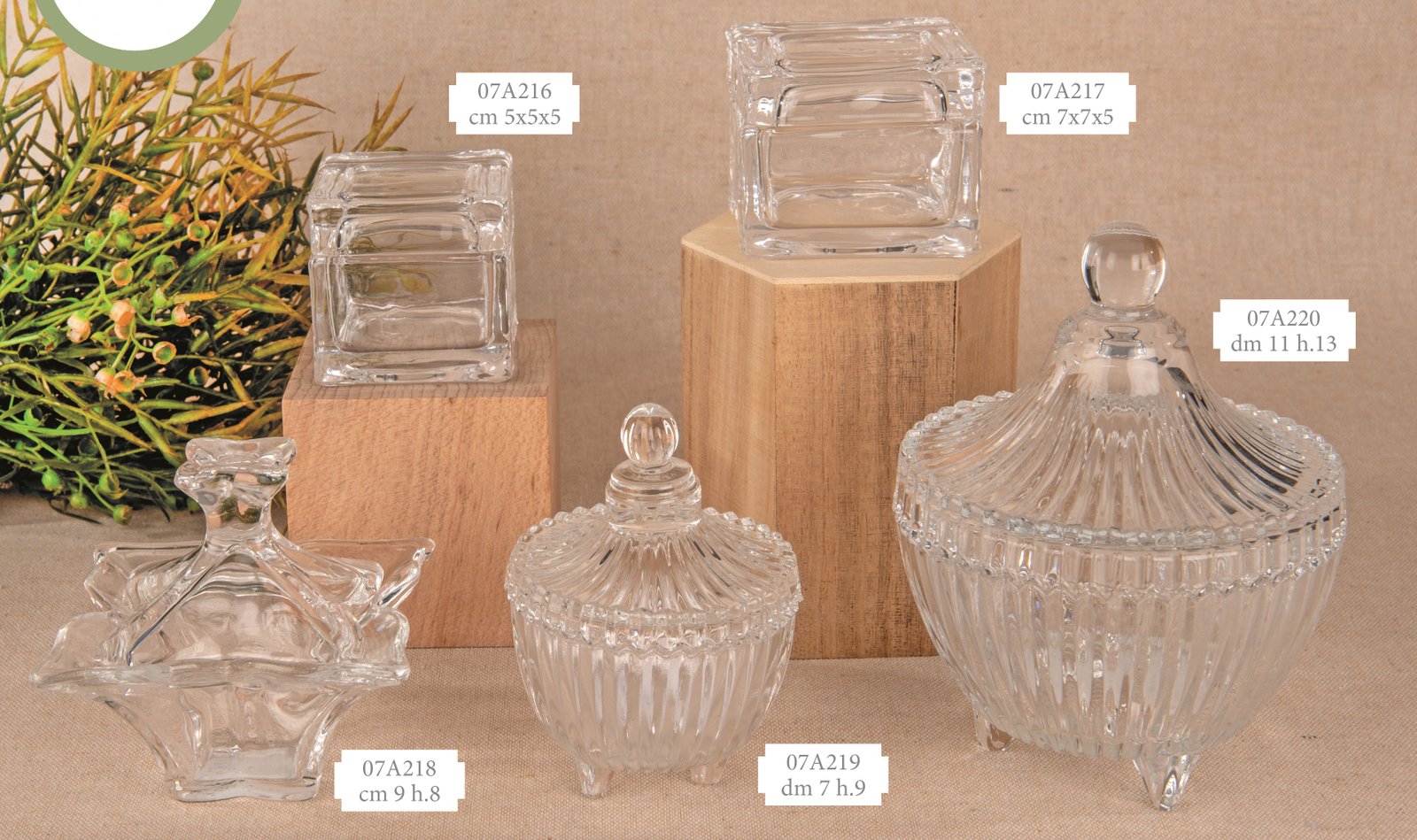 07A216 - CRYSTALL NEW SCATOLINA CM 5X5X5 PREZZO 3.40 07A217 - CRYSTALL SCATOLINA CM 7X7X5 PREZZO 4.00 07A218 - CRYSTALL SCATOLA 4 PUNTE CM.9 H.8 PREZZO 4.50 07A219 - CRYSTALL SCATOLA 3 PIEDI DM.7 H.9 PREZZO 3.40 07A220 - CRYSTALL SCATOLA 3 PIEDI DM.11 H.1