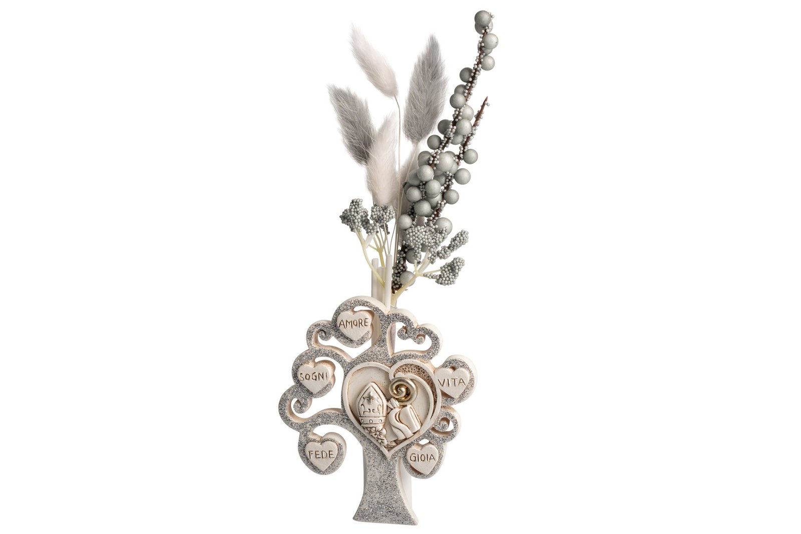 ICONA PROFUMATORE ALBERO DELLA VITA CON SIMBOLO CRESIMA CM. 11.5 CON GLITTER IN SILVER - CON BOX