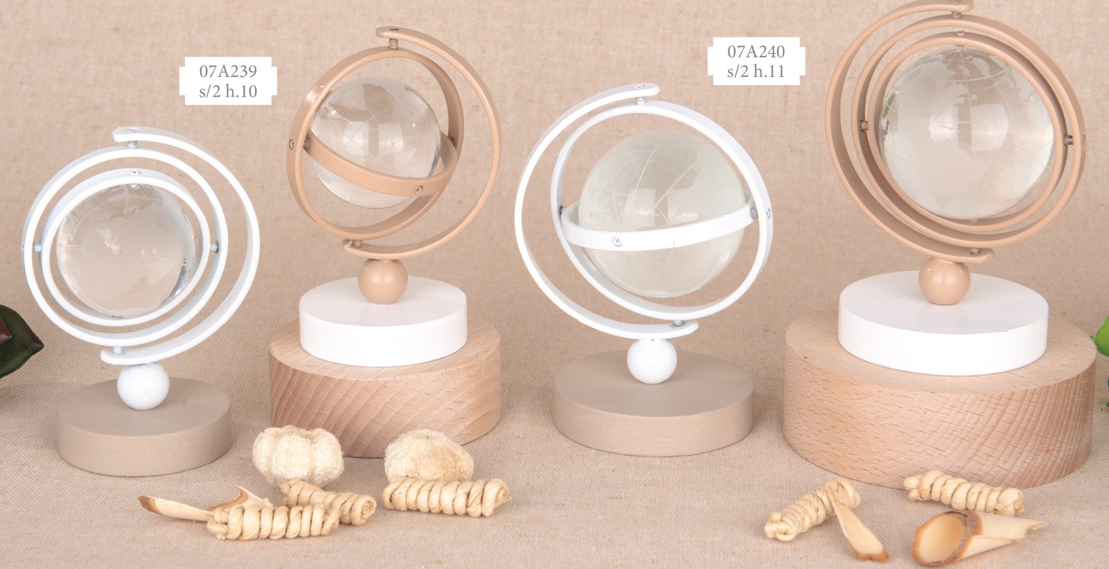 Il globo intrecciato simboleggia destini uniti, un concept romantico e moderno. In 2 altezze h.10-11 cm, è elegante e decorativo, perfetto per coppie globetrotter.