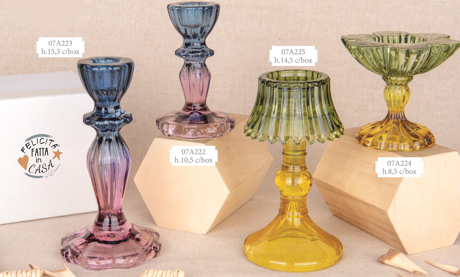 07A222 - COLORFUL P/C PURPLE H.10,5 C/BOX PREZZO 7.80 07A223 - COLORFULL P/C PURPLE H.15,5 C/BOX PREZZO 9.60 07A224 - COLORFULL P/C GREEN H.8,5 C/BOX PREZZO 10.40 07A225 - COLORFULL LUME GREEN H.14,5 C/BOX PREZZO 13.00