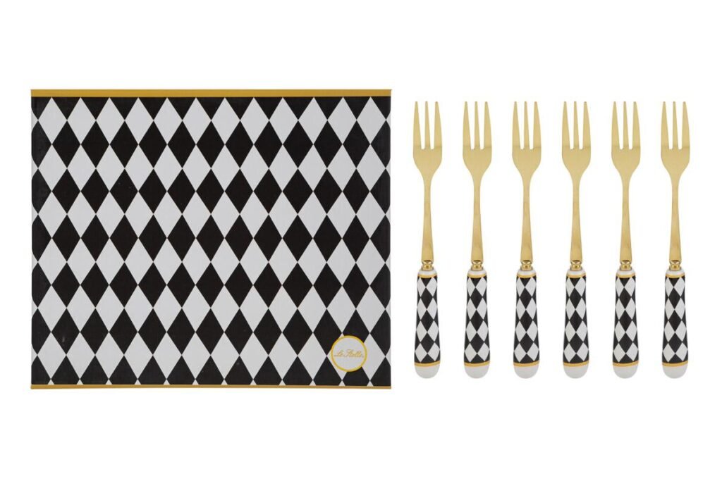 58267 - SET 6 PZ FORCHETTINE DEC.SCACCHI15CM C/ASTUCCIO