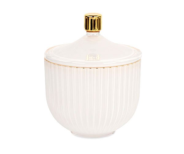 La texture Plissé è un elemento di alta moda e design d'interni, ora adottato nelle bomboniere di lusso. Aggiunge un sofisticato effetto ottico e un tocco moderno, rendendo la potiche (vaso) un pezzo d'arredo desiderabile.