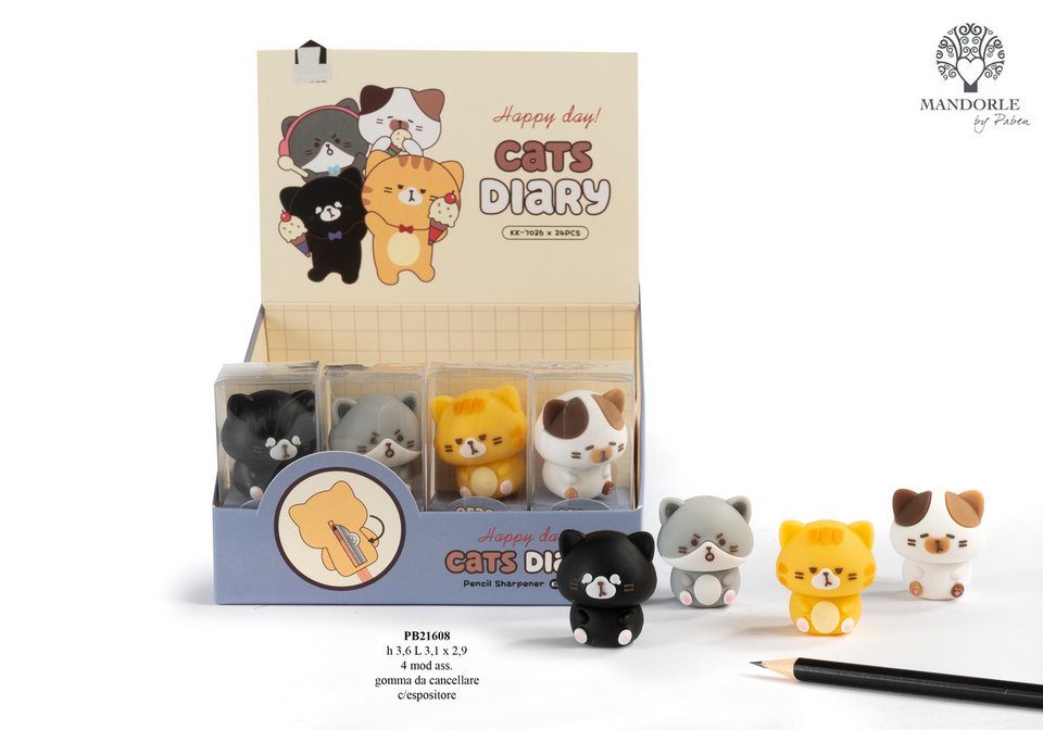 21608 - GOMMA PER CANCELLARE GATTINO SPIR. 3.6 CM. 4 AS. PVC D. BOX