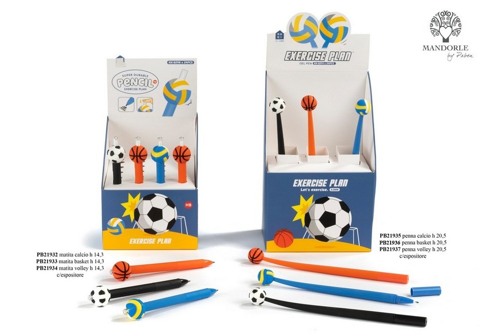 Matite e Penne con Pallone da Calcio, Pallacanestro, Pallavolo (
