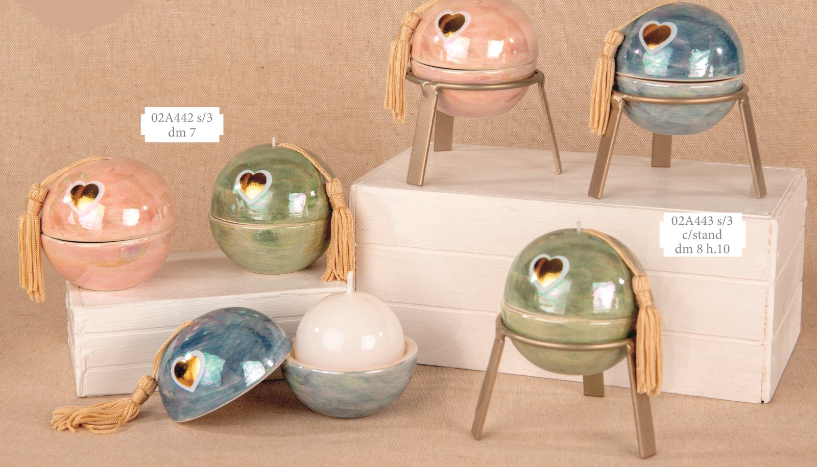 Iride Portacandela dm.7 e dm.8 h.10 Bomboniera 3 ass. con Stand 02A442-02A443, ideale per Matrimonio magico.