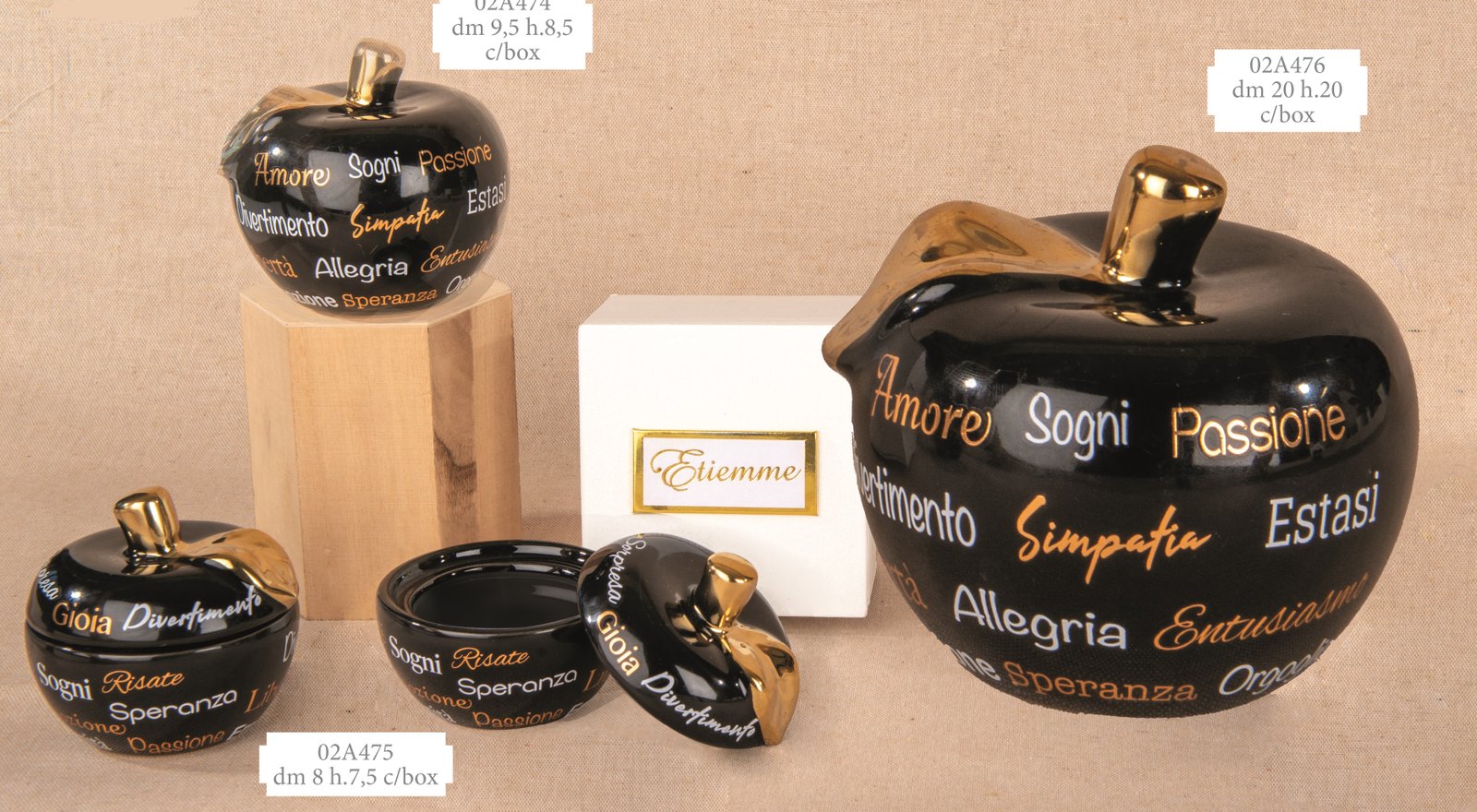 02A474 - ESTASI MELA NERA DM.9,5 H.8,5 C/BOX PREZZO 10.30 02A475 - ESTASI MELA BOX NERA DM.8 H.7,5 C/BOX PREZZO 11.30 02A476 - ESTASI MELA NERA DM.20 H.20 C/BOX PREZZO 45.20