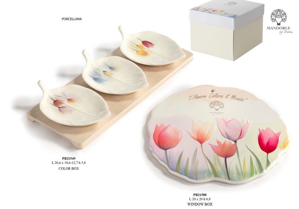 21549 - SET 3 CIOTOLINE A FOGLIA SU VASSOIO 26.6 CM. PORC. LEGNO C.BOX PREZZO 16.80
