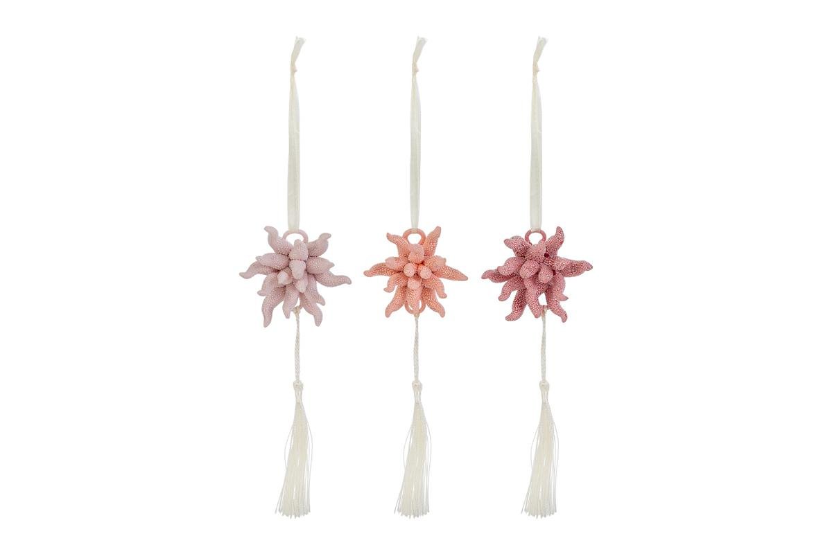 Il corallo è simbolo di protezione e fortuna in mare. 3 colori assortiti 6×6×3 cm con gancio e magnete – stile mediterraneo che non passa inosservato.