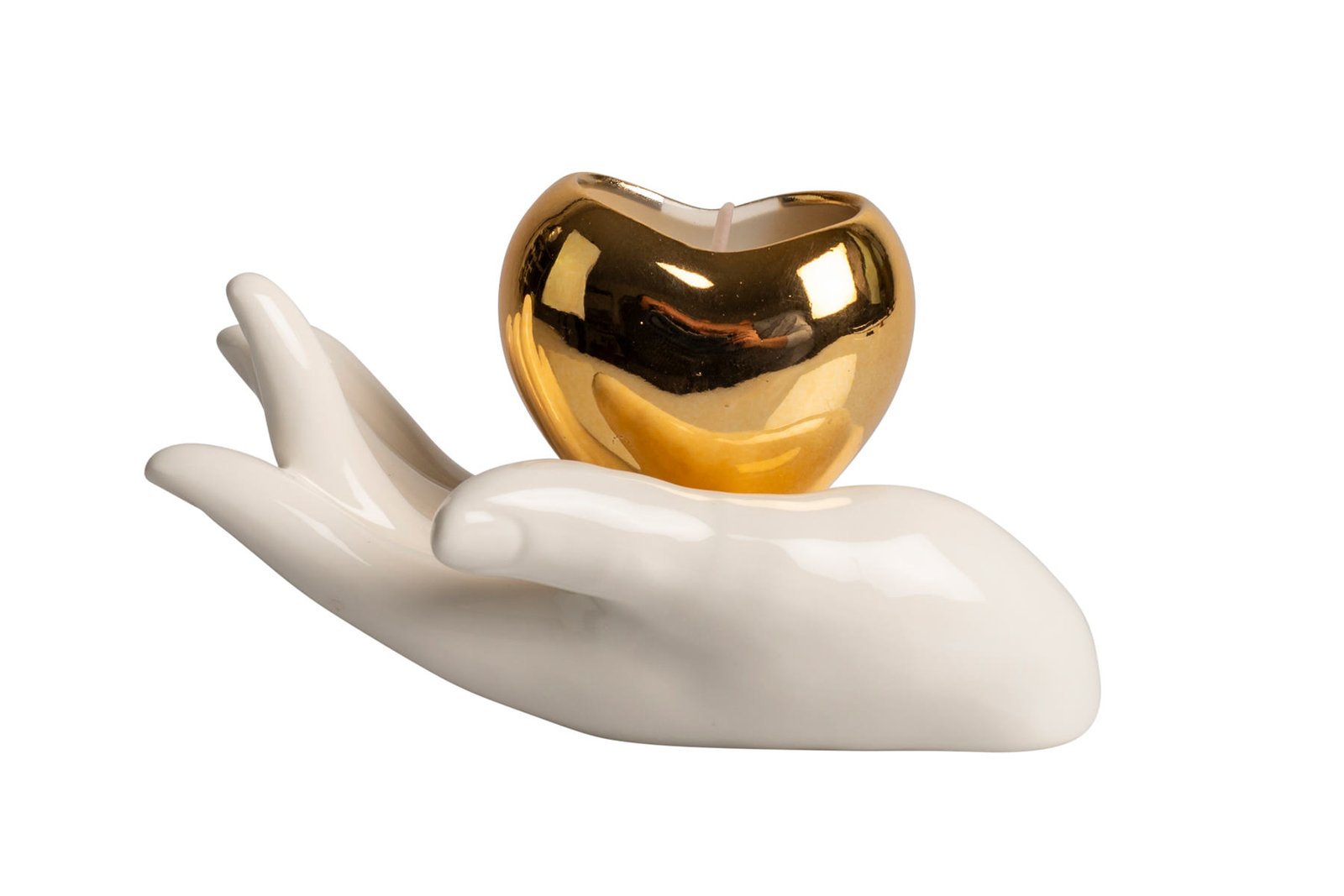 PRMT25105PB - MANO BIANCA PORCELLANA CON CANDELA CUORE ORO CON BOX (NO FAZZOLETTO)