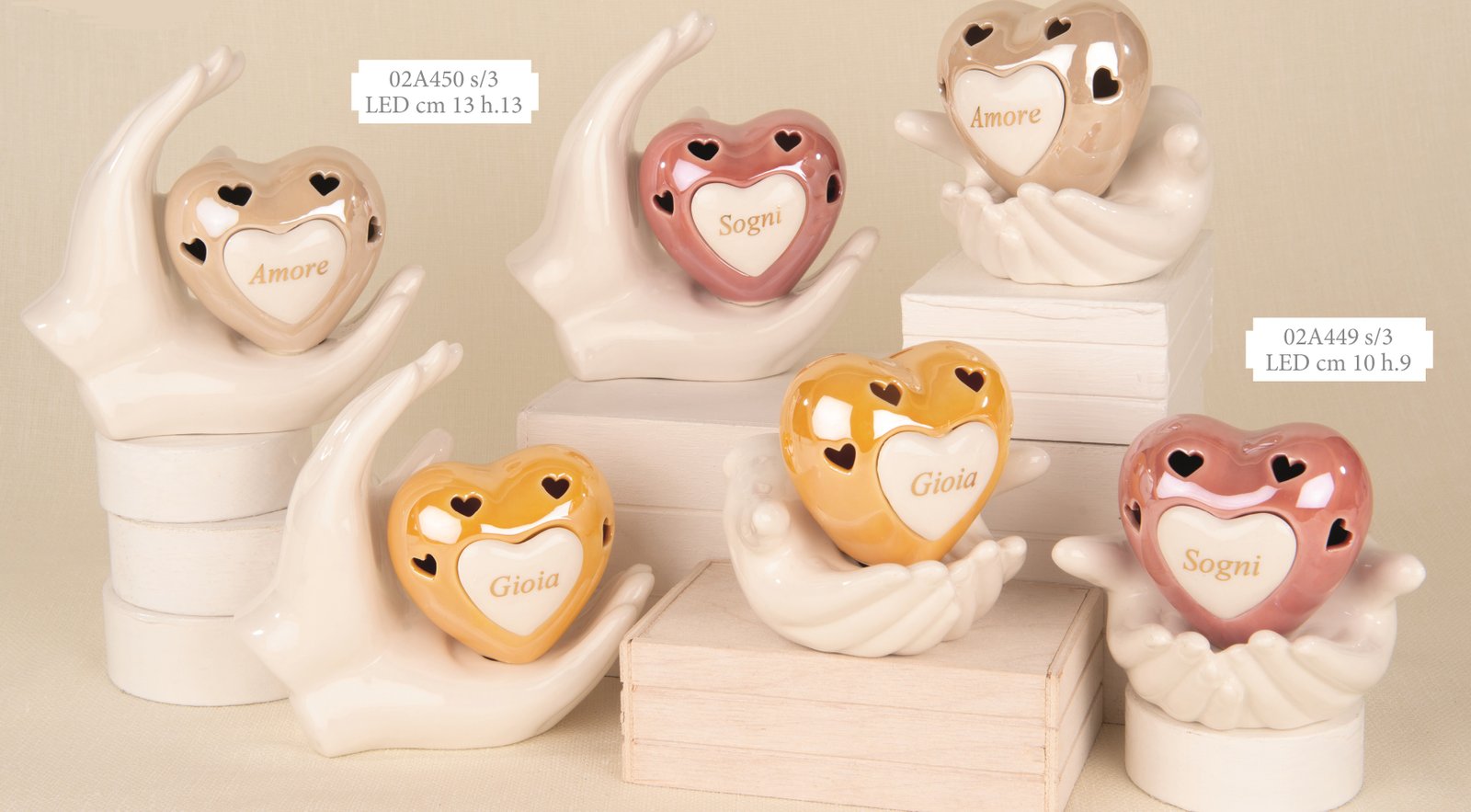 Pensiero Mani LED e Arco LED Set 3 Pezzi Bomboniera 10x9-13x13 cm 02A449-02A450, ideale per Matrimonio romantico.