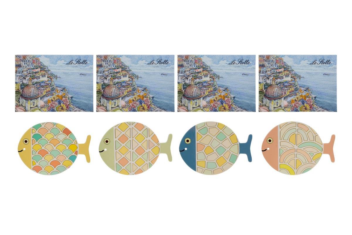 Forma pesciolino + 4 colori marini + ceramica resistente = allegria e praticità. 15×20 cm protegge il tavolo e diventa décor permanente.