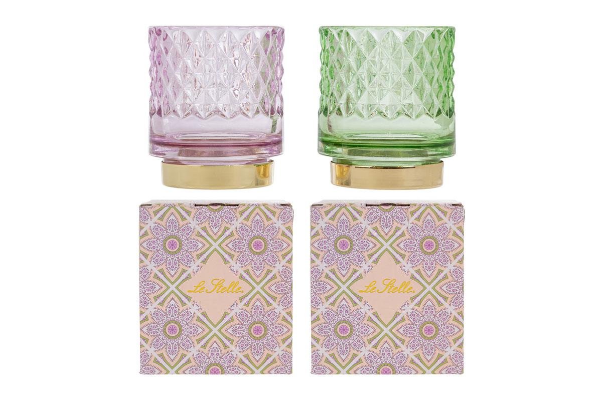 58065 - PORTACANDELA VETRO COLORATO 2ASS.7x7xh.8CM C/COLOR/BOX
