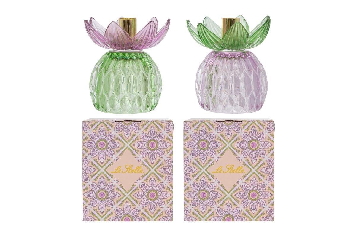 58067 - PORTACANDELA FIORE VETRO COLORATO 2ASS.11x11xh.12CM C/COLOR/BOX
