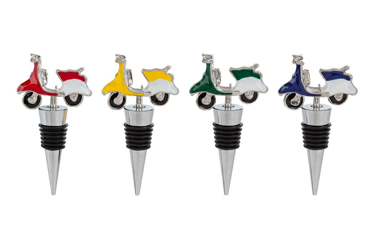 Design Harley-style in metallo cromato, 4 versioni assortite – ogni tappo è un pezzo da collezione. Perfetto per sposi motociclisti o amanti del genere.