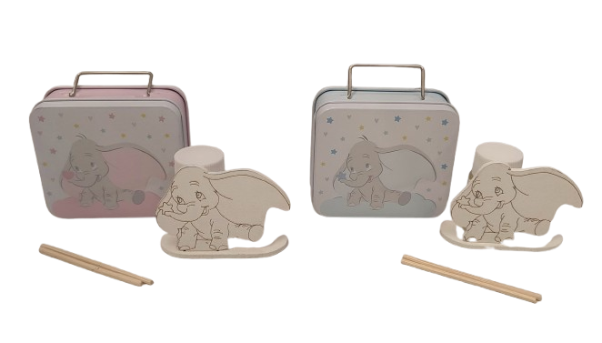 Bomboniera Set Scatolina Latta e Diffusore Elefantino (simil Dumbo) CREACR6154. Disponibile in celeste e rosa. Ideale per nascita e battesimo - Bomboniere Cupido Trapani.