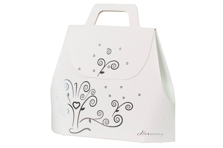 'Box' è una confezione elegante che protegge e presenta la bomboniera completa, senza fazzolettino per semplicità, ma con cura nel dettaglio.