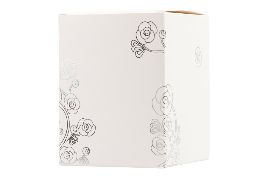 'Box' è una confezione elegante che protegge e presenta la bomboniera completa, senza fazzolettino per semplicità, ma con cura nel dettaglio.