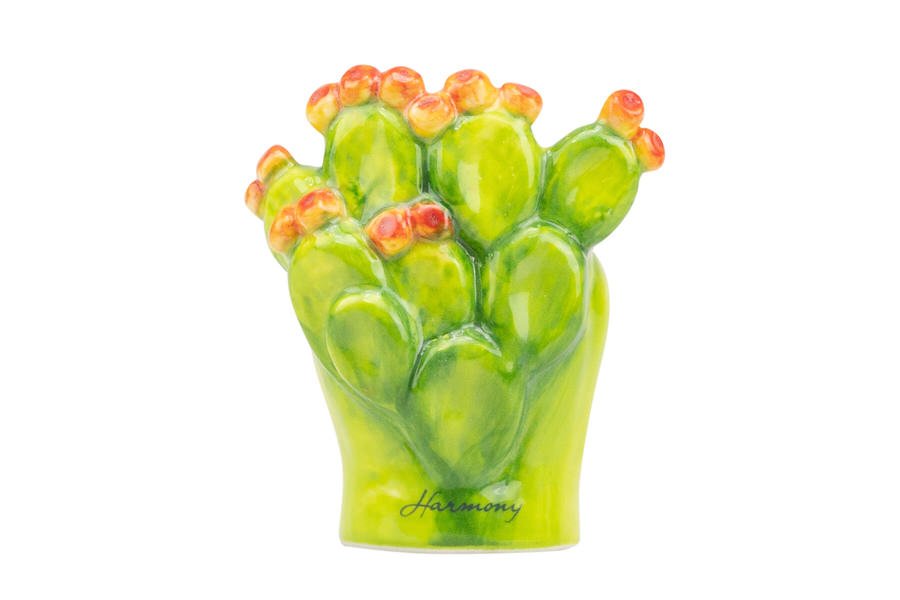 Il cactus/fichidindia simboleggia resilienza mediterranea, un trend regionale attuale. In ceramica 10cm, è funzionale e decorativo, rendendolo un ricordo autentico e durevole per eventi pugliesi.