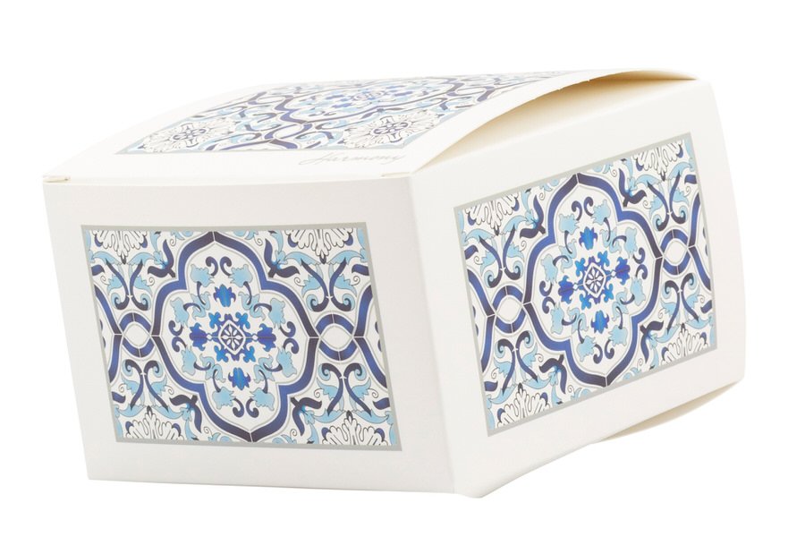 'Box' è una confezione elegante che protegge e presenta la bomboniera completa, senza fazzolettino per semplicità, ma con cura nel dettaglio.